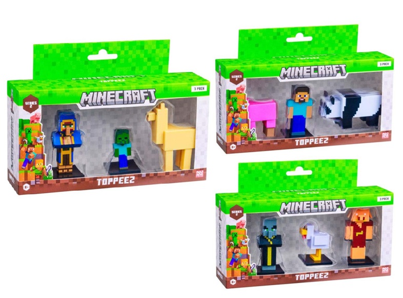 Immergiti nell’universo di Minecraft con personaggi fedeli al mondo unico e pixelato di Minecraft. La serie 2 di questa scatola con vetrina contiene 3 personaggi 3D Minecraft e una brochure in 4 colori. La collezione comprende 20 personaggio piu’ 4 rari. Collezionali tutti.