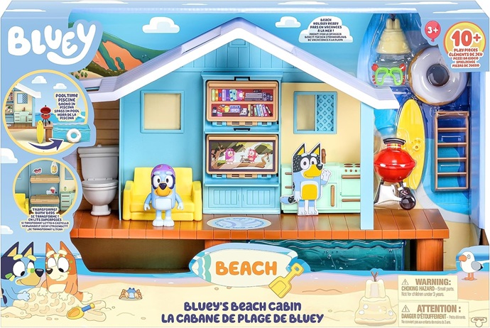 Ora i tuoi figli possono andare in vacanza al mare con Bluey quando visita la sua Beach Cabin! Il set da gioco Bluey’s Beach Cabin è ricco di funzioni divertenti per renderlo una vacanza da ricordare!