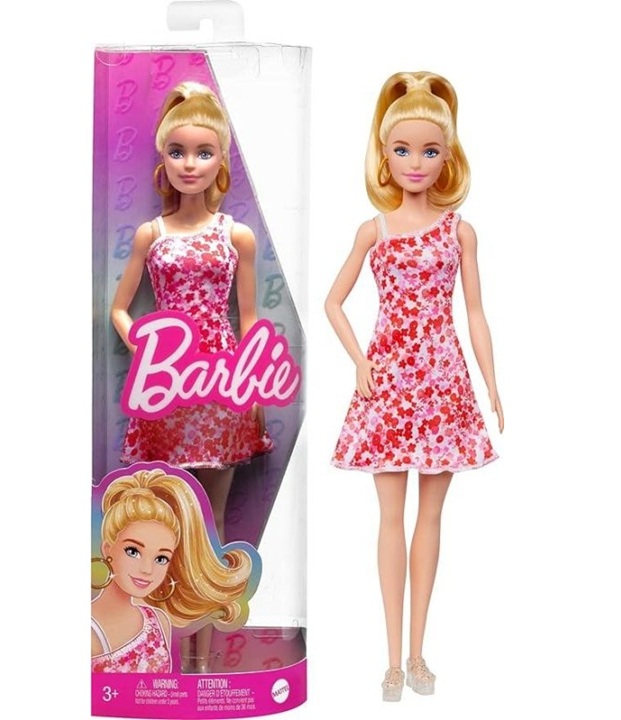 Barbie Fashionistas con vestitino rosa a fiori capelli biondi e orecchini