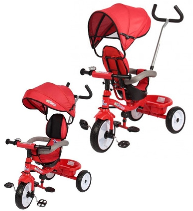 Triciclo reversibile con manico e cappottina parasole, sacca portaoggetti, sedile reversibile.