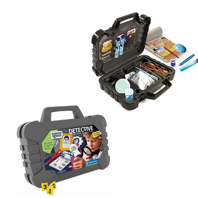 Una valigetta scientifica da vero detective per indagare sulle scene del crimine e scoprire il colpevole. Rileva impronte digitali, realizza calchi di gesso, cataloga prove e sistemi per isolare la scena del crimine e codifica messaggi criptati. Tutto l’occorrente per divertirti e giocare a diventare un vero detective. Un gioco che unisce il mondo della scienza a quello del mistero. Età consigliata: dagli 8 anni in su.