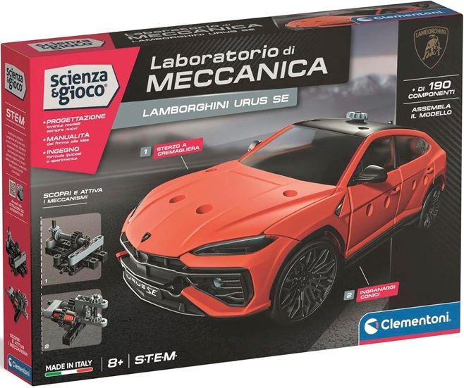 CLEMENTONI SCIENZA E GIOCO LABORATORIO DI MECCANICA: una serie di modellini in scala da costruire e ricostruire, stimolando la fantasia e imparando concetti di ingegneria e meccanica; tanti kit spettacolari per unire progettazione, manualità e ingegno