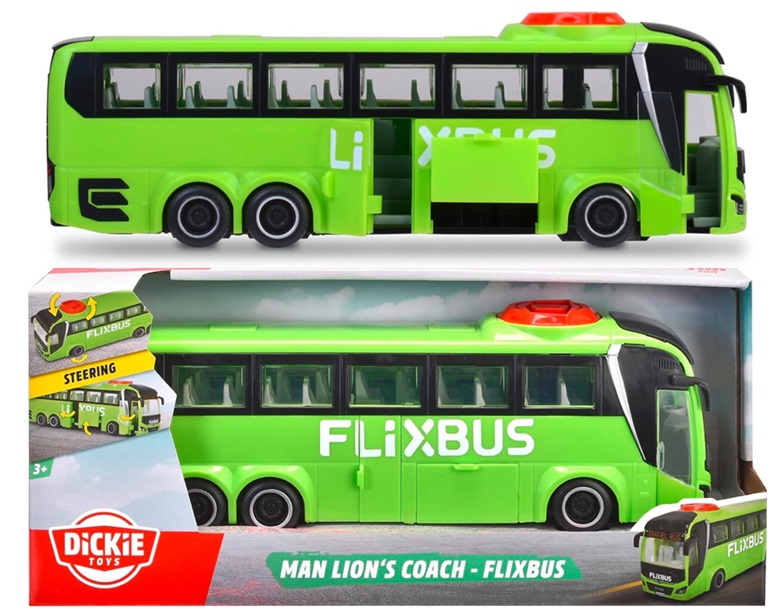 Dickie Toys – Autobus giocattolo Man FlixBus Verde, 27 cm, Autocar con funzione di sterzo, 3 anni
