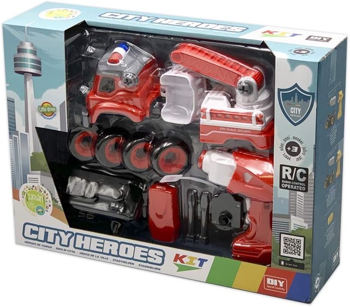 Camion dei pompieri rimovibile da 31 pezzi con suoni e funzioni di controllo radio; divertente e con un trapano elettrico per bambini incluso nel giocattolo, i bambini assembleranno questo fantastico camion