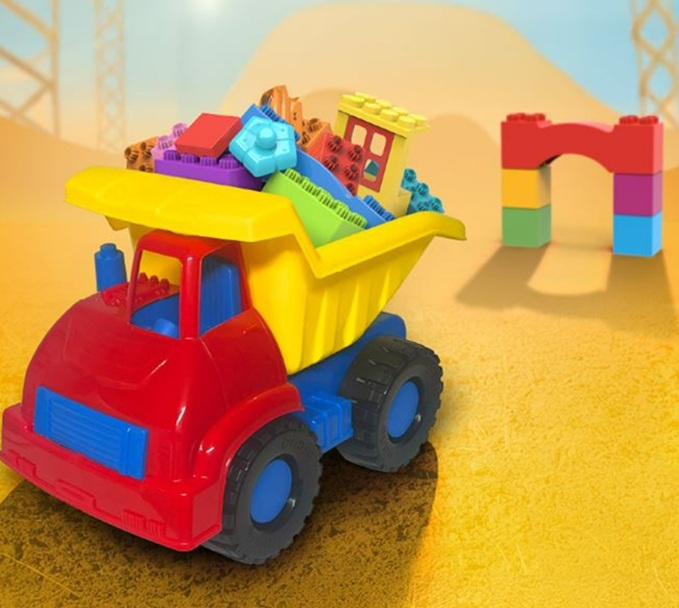 Camion rosso, giallo e blu con mattoncini colorati (30 pezzi) 32x20x25 cm