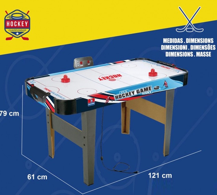 Gioco di abilità basato sull’hockey. Con aria; Include marcatore digitale. Misure: 121X81X79